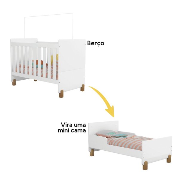 O berço mini cama melody da móveis estrela torna a chegada de ser bebê um momento tão especial, e a segurança dele deve ser prioridade. Por isso a móveis estrela produz seus berços respeitando a norma de segurança nbr 15860 da abnt (associação brasileira de normas técnicas) que impedem os riscos e favorecem a segurança do bebê e o bem-estar da família. O acabamento do berço melody é feito com tinta atóxica e bordas pintadas que protege o bebê das quinas. As grades são em mdf pintada. Possui também sistema de fixação com porca cilíndrica e duas regulagens de altura para o estrado. Espaço para colchão de 130 x 70 cm. características: estrutura em mdf berço 100 mdf pintura atóxica aramado com pintura epóxi para mosquiteiro pés reforçados em madeira indicação de colchão de 130×70 cm selo inmetro 006882/2018 dimensões: altura: 98,2 cm largura: 137 cm profundidade: 75 cm peso: 39,20 kg garantia do fornecedor de 3 meses. para limpeza use um pano macio seco ou ligeiramente umedecido com água e depois um pano seco. Não use agentes de limpeza ou abrasivos.