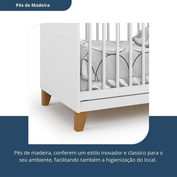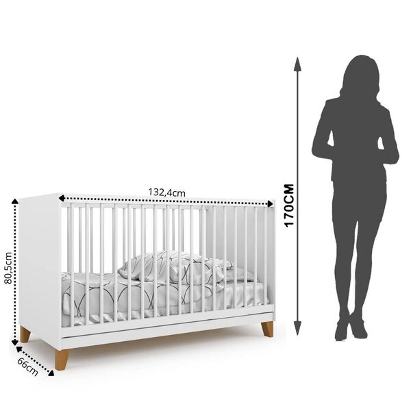 Berço simples 80,5x66x132,4 cm magia branco. Com a chegada do bebê, é natural que a futura mamãe se preocupe com o seu conforto, segurança e bem estar. O berço além de bonito e confortável deve ser seguro, pois é nele que o bebê irá passar grande parte do seu dia. A batrol móveis possui vários modelos e cores e todos oferecem alta resistência com altos padrões de segurança. Estilo: moderno peso (kg): 27.4 garantia: 03 meses portátil: não altura (cm): 80.5 acabamento: pintura uv largura (cm): 66 possui pés: sim possui portas: não altura dos pés: 14.5 possui gavetas: não possui rodízio: não suporta até (kg): 50 pintura atóxica: sim profundidade (cm): 132.4 tipo de estrado: removível acompanha móbile: não escala de brilho: brilhante material dos pés: madeira maciça serviço montagem: 114259443 acompanha colchão: não origem do produto: nacional ambiente principal: quarto de bebê material principal: mdp possui prateleiras: não material do estrado: madeira e mdf sapatas niveladoras: não sistema anti-refluxo: não tipo de grade do berço: fixa acompanha cama auxiliar: não altura do estrado até o chão: 42.8 tipo de madeira maciça dos pés: eucalipto estrado com regulagem de altura: sim acompanha suporte para mosquiteiro: não estrado regulável em quantas posições: 3 permite a utilização de cama auxiliar: não fabricante: batrol móveis marca: batrol móveis cor do produto: branco itens inclusos: 1 berço, kit ferragens e manual de montagem cor predominante: branco linha ou coleção: magia multifunção flex: não tipo de certificado: inmetro 002883/2025 opções de altura do estrado: 17,2 – 30 – 42,8 tamanho do colchão indicado (l x c): 130cm x 60cm x 12cm