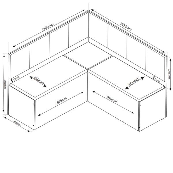 O canto alemão liebe é a escolha perfeita para transformar sua cozinha ou sala de jantar com charme, funcionalidade e conforto. Com design inteligente, ele é ideal para ambientes compactos que não abrem mão da elegância. O canto possui baú interno, oferecendo praticidade e espaço extra para organização. Os assentos são acolchoados e revestidos em veludo, proporcionando um toque macio e visual sofisticado.medidas:[ a ] = 90,5 cm[ l ] = 137,5 cm (maior) 136 cm (menor)[ p ] = 46,5 cmpeso: 69kgpeso suportado: 90kg por assentomodelo: canto alemão com baú liebe veludo vieromarca: vieroestrutura: mdpacabamento: semi brilhotecido: veludo toque macioquantidade de lugares : 4 a 3 lugaresmaterial do tampo: mdpdiferencial: canto com baú para armazenar itens, ótimo divisor de ambiente e revestido com veludosistema de montagem: parafusos e cavilhasitens inclusos: 1 canto alemão, 1 manual de montagem e 1 kit parafusosinstruções e cuidados: limpar com pano levemente umedecido com água, não utilizar produtos abrasivosgarantia: 3 meses pelo fabricante importante sobre a entrega: a entrega é realizada até a portaria ou porta de entrada do endereço indicado, desde que o acesso seja permitido. Para locais com portaria, a entrega será feita no piso térreo. Não realizamos montagem, desmontagem, transporte por escadas ou içamento. É responsabilidade do cliente verificar se as dimensões do produto são compatíveis com portas, elevadores e corredores. Evite imprevistos: confira todos os detalhes antes de concluir sua compra.