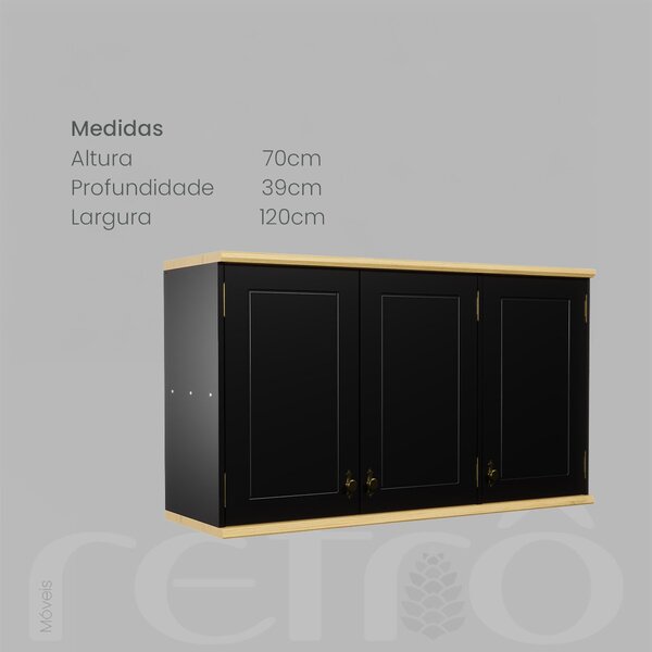 esta cozinha única apresenta bases e tampos feitos de madeira maciça pinus taeda reflorestada, com impressionante espessura de 25mm, garantindo durabilidade e um visual rústico. A pintura atóxica assegura um ambiente seguro e saudável para sua família. Os puxadores em textura ouro envelhecido acrescentam um toque de elegância antiga, enquanto os pés robustos e torneados, também em pinus taeda, incluem niveladores para garantir estabilidade e estilo. Frentes de portas (sem vidros) e gavetas com detalhe de linha em baixo relevo exalam um charme vintage. A estrutura é formada com painéis de fibra de madeira (mdf de 15mm), combinando a estética retrô com a resistência dos materiais modernos. Uma escolha perfeita para quem aprecia o design clássico com um toque contemporâneo.” características principais: -base e tampos de madeira maciça pinus taeda reflorestada, com espessura de 25mm; -pintura atóxica; -puxadores padrão textura ouro envelhecido; -pés robustos e torneados de madeira maciça de pinus taeda com nivelador; -portas com vidros reflecta lapidados; -frente de portas e gavetas com detalhe de linha baixo relevo; -estrutura painéis fibra de madeira (mdf 15mm); -gavetas com corrediças telescópicas. Características gerais: -cor preto/marfim *importante: tampo do balcão 2 portas 4 gavetas vendido separadamente.