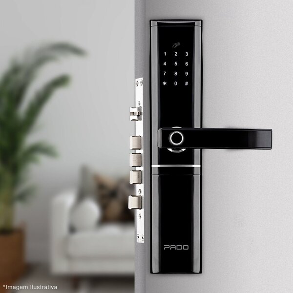 Fechadura digital zamac fd-500 pro preto. A fechadura eletrônica digital inteligente fd-500 pro foi projetada para facilitar o acesso em portas de 30 a 120 mm de espessura, localizadas em ambientes não expostos ao tempo. Suas múltiplas opções de abertura garantem versatilidade, permitindo que cada pessoa opte por acessar da forma que achar mais conveniente. A fechadura eletrônica digital inteligente fd-500 pro é a mais completa entre os modelos de fechaduras, pois possui as opções de abertura de porta por aplicativo, impressão digital, senha numérica, cartão e chave de emergência. A fechadura eletrônica digital inteligente fd-500 pro permite o cadastro de 100 impressões digitais, 50 cartões, 50 senhas numéricas e a liberação de acesso à distância por meio de aplicativo. A fechadura eletrônica digital inteligente fd-500 pro é composta de maçanetas e guarnições em aço e polímero de engenharia e máquina em aço inoxidável. Seu funcionamento é alimentado por 4 pilhas do tipo aa. O aplicativo de controle de acesso está disponível para os sistemas ios e android. Você pode comprar as fechaduras pado por meio de nosso e-commerce e receber no conforto de sua casa em poucos dias, ou buscar pela loja revendedora mais próxima de você. Adquira agora mesmo a fd-500 pro, uma fechadura inteligente com a qualidade que a pado oferece desde 1936. Obtenha facilidade no gerenciamento de acesso em sua casa ou empresa, com a praticidade de escolher entre impressões digitais, senha numérica, cartões de contato, chave física, aplicativo ou a combinação entre as opções. Peso (kg): 5.25 garantia: 12 meses altura (cm): 36.1 largura (cm): 7.3 possui maçaneta: sim profundidade (cm): 3 tipo de teclado: touch-screen acompanha pilhas: 4 origem do produto: importado tipo de fechadura: digital trinco reversível: sim tipo de alimentação: pilha acompanha ficha técnica: sim espessura mínima da porta: 30 possui alarme de incêndio: sim resistência à intempéries: não possui botão de privacidade: sim possui travamento automático: sim possui modo de alta segurança: sim tipo de abertura da fechadura: cartão/chave/senha/biométrica acompanha manual de instalação: sim informações complementares (novo): capacidade máxima de senhas numéricas: 50 senhas com 6 a 8 dígitos. Capacidade máxima de impressões digitais: 100 digitais. Capacidade máxima de cartões: 50 cartões. Acabamento (construção e acabamento): abs material principal construção e acabamento: zamac possui chave de emergência de alta segurança: sim fabricante: pado marca: pado tonalidade: preto cor do produto: preto itens inclusos: 1 gateway, 5 cartões de acesso rfid e 1 conjunto fechadura. Cor predominante: preto linha ou coleção: digital locking tipo de certificado: anatel